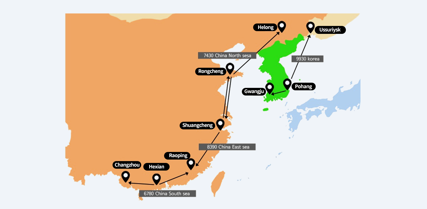 | South Korea | 1 | 9930 Korea | Pohang | Gwangju(W) Ussuriysk(Z) |